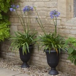 There’s nothing finer than a large Agapanthus in full flower at the height of summer, creating an eruption of brilliant blue. Its the perfect plant for an ornate container and with a little care will last a lifetime. Even before the 1m flower stems appear the bright green strap life leaves are a lovely sight and heighten the expectation of the blooms to come from mid summer.